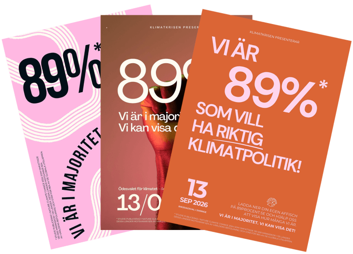 89 procent av världens befolkning vill att deras regeringar ska göra mer för att bekämpa klimatförändringarna. Det visar en global studie, som även omfattar Sverige, publicerad i tidskriften Nature. För att lyfta denna majoritet vill vi nu kraftsamla för att inför valet och få klimatet högre upp på agendan – och vi behöver din hjälp!